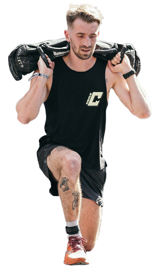 7) 1000 m de course → 100 m sandbag lunges (fentes marchées avec charges)